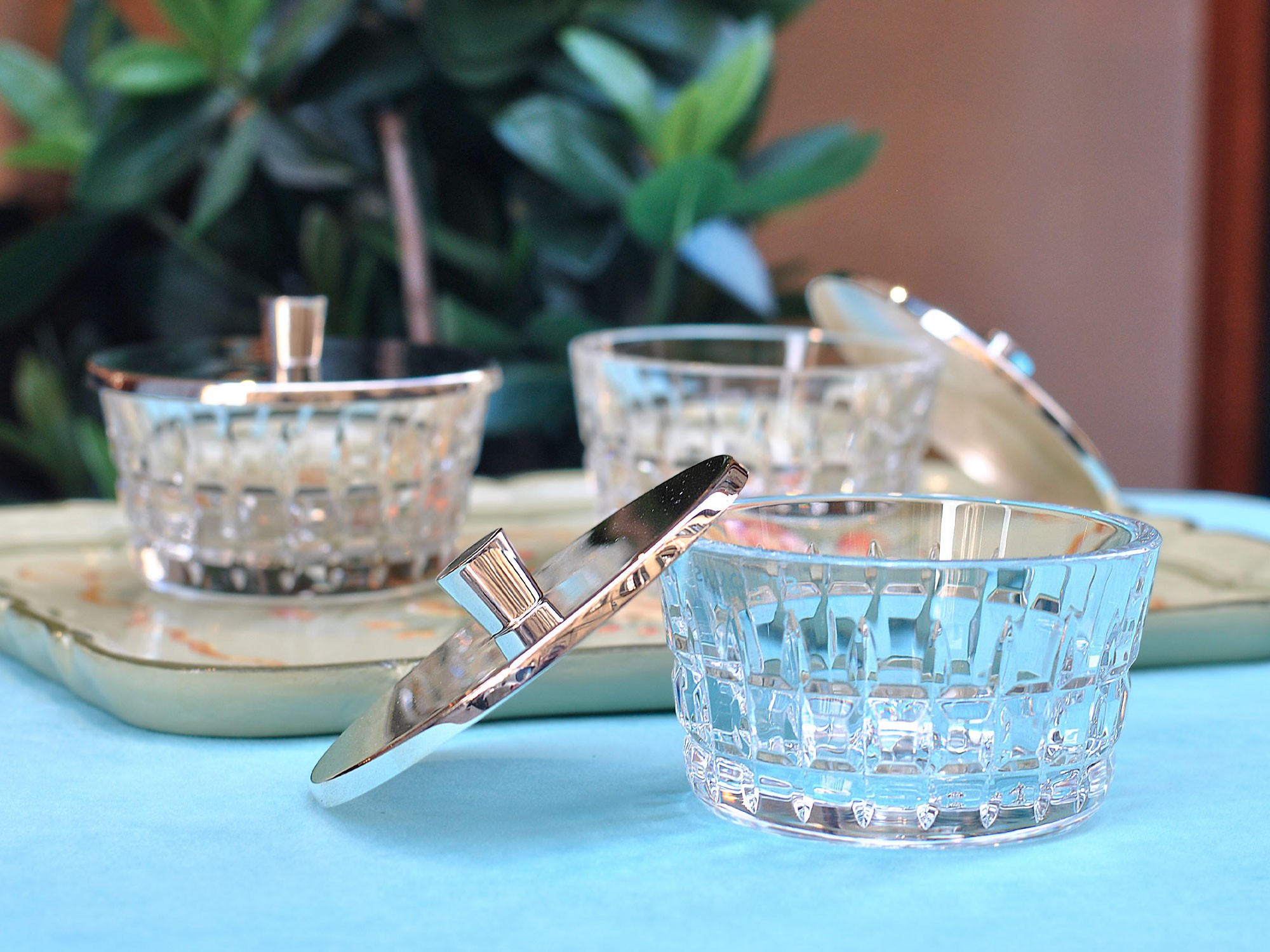 From Saint Louis' 'Royal' collection, a charming and convenient centrepiece. represented by the Saint Louis Royal cup and lid that allows for elegant and refined storage of creams, biscuits, savouries and whatever else our imagination suggests.