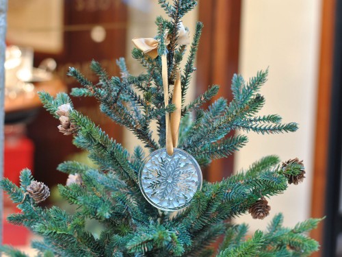 Hanging from the heart of the fir tree, the Frost Christmas ornament becomes a lucky charm. Shining in its transparent crystal, sparkling in its golden luster, it is a symbol of winter splendor and the magic of the Christmas holidays.