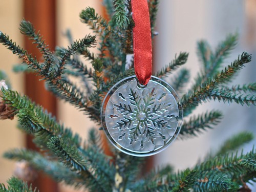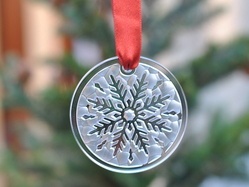 Hanging from the heart of the fir tree, the Frost Christmas ornament becomes a lucky charm. Shining in its transparent crystal, sparkling in its golden luster, it is a symbol of winter splendor and the magic of the Christmas holidays.