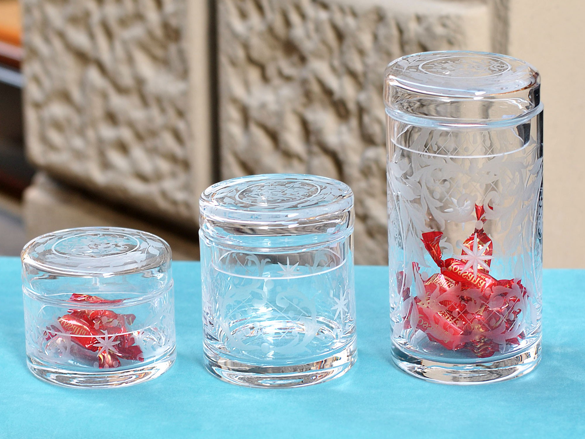 The contrast between the transparency of the crystal and the satin finish of the engravings creates unique plays of light, capable of warming every corner of the home.
