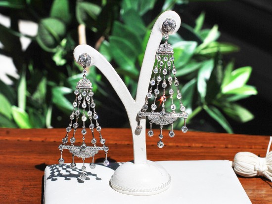 Long Platinum and Diamond Earrings, Art Deco, 1930
