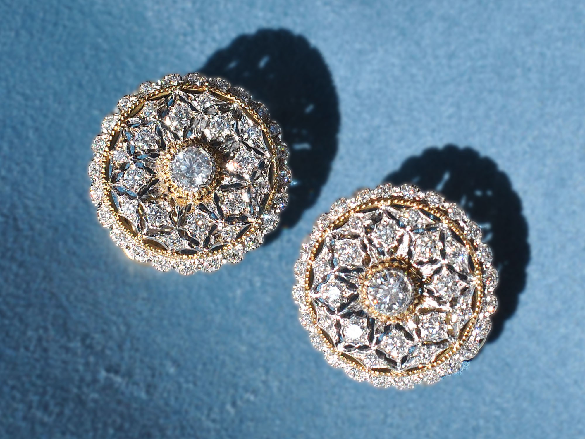 They are yellow and white gold earrings with diamonds, made around 1980 in true Buccellati style.