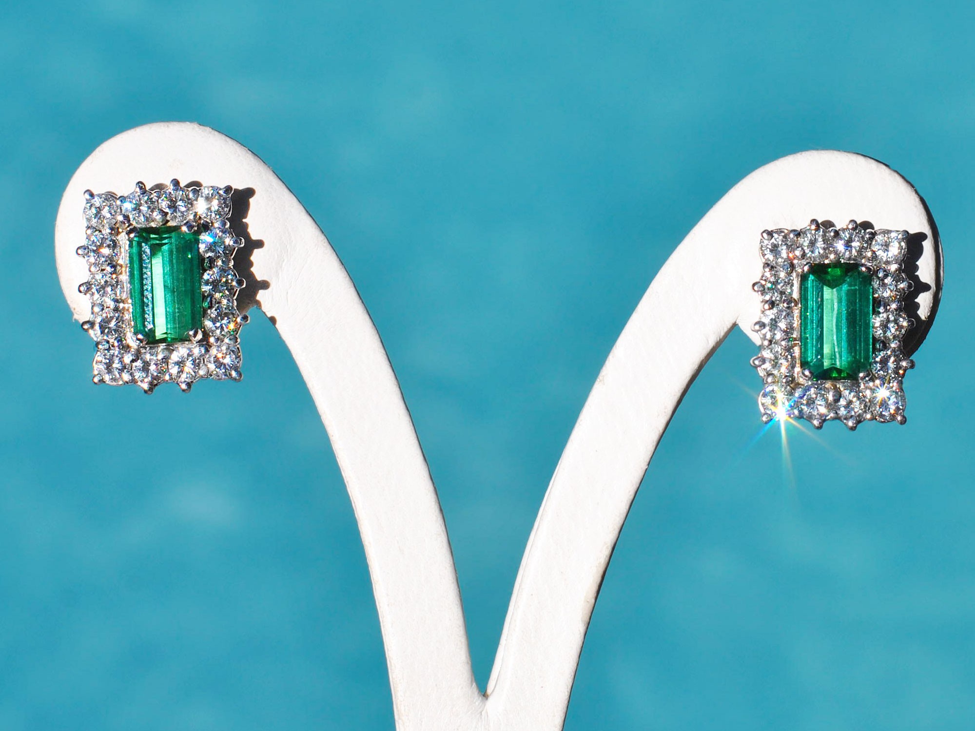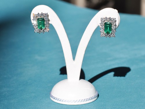 These refined earrings feature an elegant and timeless design, embellished with a vibrant green tourmaline with crystal-clear transparency and a rectangular cut, set in a white gold mount that enhances its brilliance and purity of color.
