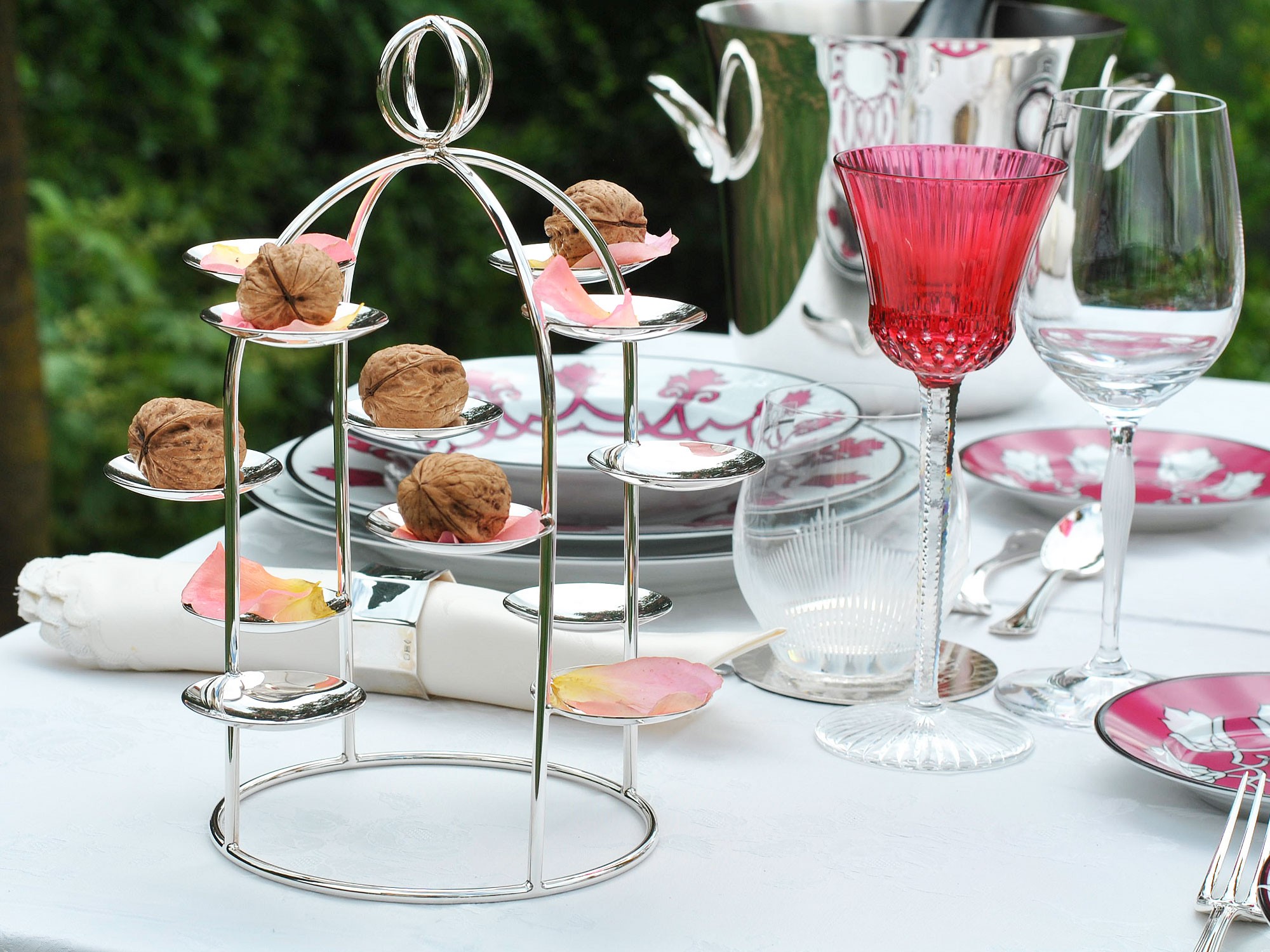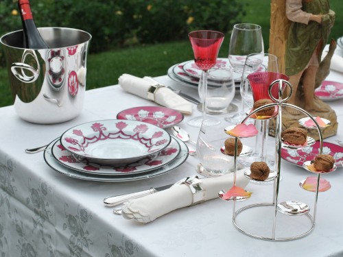 Together with the serveware, the beautiful Saint Louis collection of glasses from the Tommy and Apollo lines and the beautiful Camellia Vase by Daum contribute to making pink as the star of this joyful table.