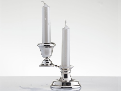 The upper part can be easily removed and thus transformed into two candlesticks with one light.