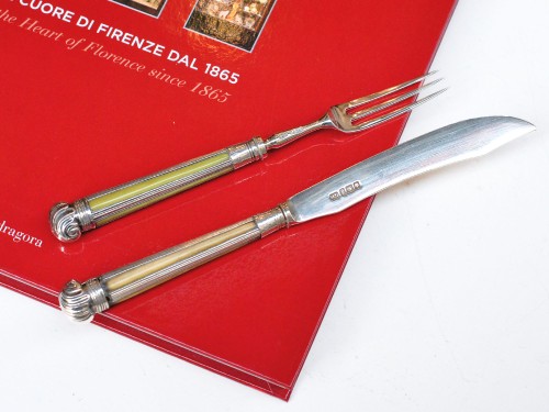 The sober and well-proportioned lines, combined with the heraldic presence of the coats of arms, give the set a noble and timeless character. Objects designed for serving fish, but also an expression of a refined style, in which aesthetics and functionality coexist harmoniously.