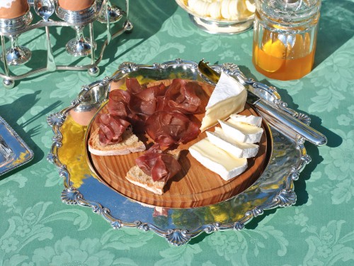 Elegante formaggiera Inglese dei primi del ’900, caratterizzata da un raffinato bordo argentato finemente lavorato con motivi decorativi in rilievo. Al centro, un tagliere circolare in legno naturale crea un piacevole contrasto materico e cromatico, rendendola perfetta per la presentazione di formaggi e salumi. L’unione tra la luminosità dell’argento e il calore del legno esprime tutto il fascino dell’artigianato britannico d’epoca. Un oggetto funzionale e decorativo, ideale per impreziosire la tavola con uno stile classico e senza tempo.