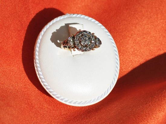 Questo anello è un raffinato frammento di storia della fine dell'800, un’epoca in cui la gioielleria celebrava l’eleganza attraverso forme allungate e sinuose. La struttura a navette, realizzata in oro giallo, è pensata per slanciare la mano con una grazia senza tempo. Al centro, un fitto tappeto di diamanti taglio antico è incastonato nell'argento, una tecnica d'altri tempi che permette alle pietre di sprigionare una luce candida e vibrante, libera dai riflessi caldi dell'oro. Ogni diamante, tagliato a mano, possiede una personalità unica che riflette la luce in modo morbido e profondo. La montatura finemente cesellate, completano l'opera con un tocco artigianale che trasforma il metallo in un ricamo prezioso. Un gioiello che non segue le mode, ma racconta una storia di eterna bellezza.