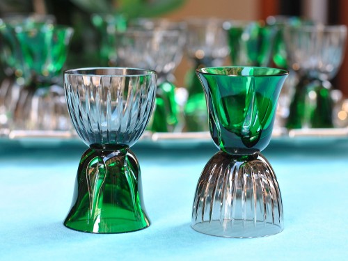 José Lévy ha creato un sorprendente abbinamento di diversi modelli di bicchieri delle iconiche collezioni Saint-Louis, oggetti splendidi sia dritti che capovolti. Gioca con le forme e la palette di colori Saint-Louis, li ridisegna, li inverte e li abbina per creare oggetti unici.