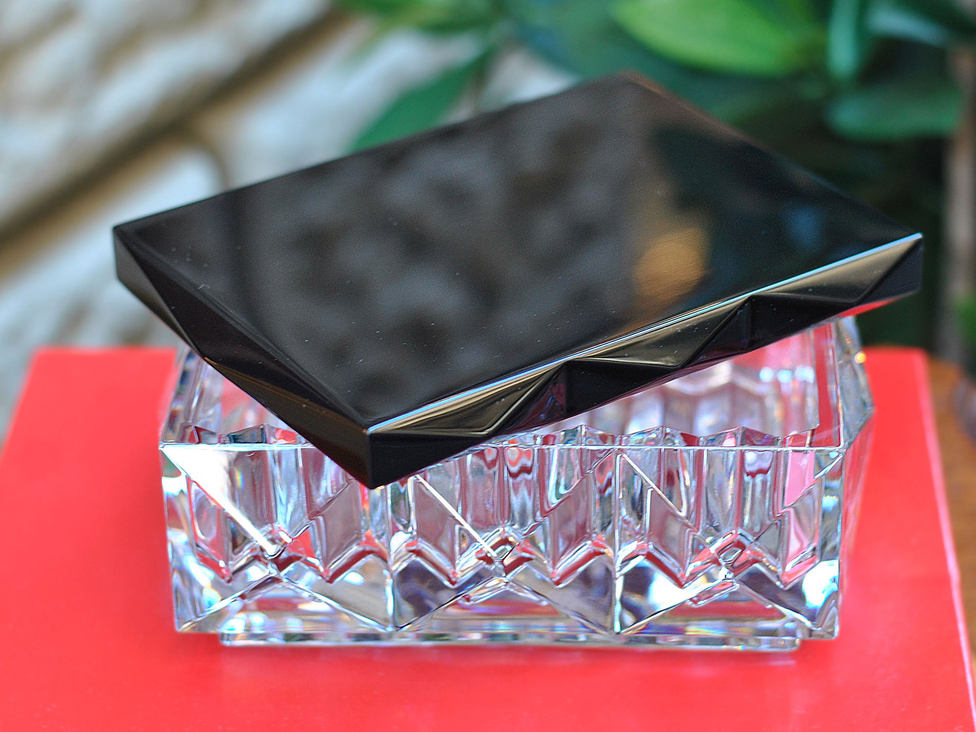 La scatola Louxor è un articolo decorativo dalla presenza elegante e scultorea. I suoi motivi geometrici, ispirati alle piramidi dell'antico Egitto, catturano ogni raggio di luce, proiettando sottili riflessi. Fusione di maestria artigianale e materiali raffinati, combina la purezza del cristallo e il calore del legno laccato in un sorprendente contrasto. Ideale per riporre piccoli oggetti da avere a portata di mano, impreziosisce con un tocco raffinato qualsiasi scrivania, console o tavolino.