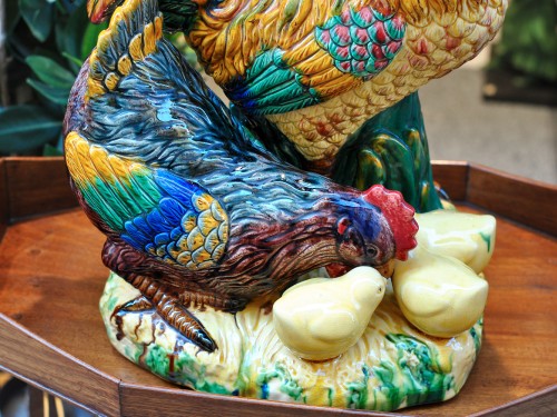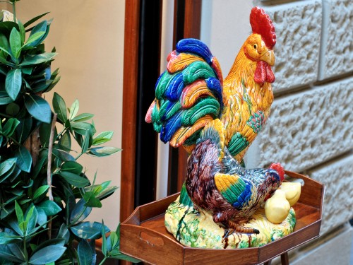 Il nostro gallo risale ai primi anni del 1900, quando in Francia, attraverso la Ceramica, venivano rappresentate tante espressione del mondo della natura, quali Chachepot, vasi, accessori per la tavola, tanti oggetti che attraverso i colori vivaci che venivano adoperati, ci trasportavano nel mondo della vita e del Sole che la illumina.