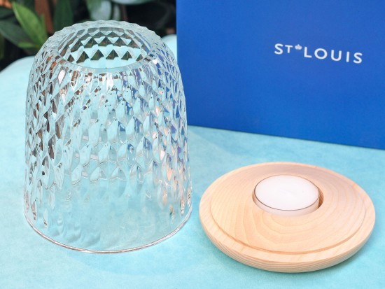 Il cristallo con taglio obliquo sfalsato crea un motivo geometrico sorprendente, che si moltiplica con la luce, riflettendo il know-how creativo e tecnico degli artigiani di Saint-Louis.
