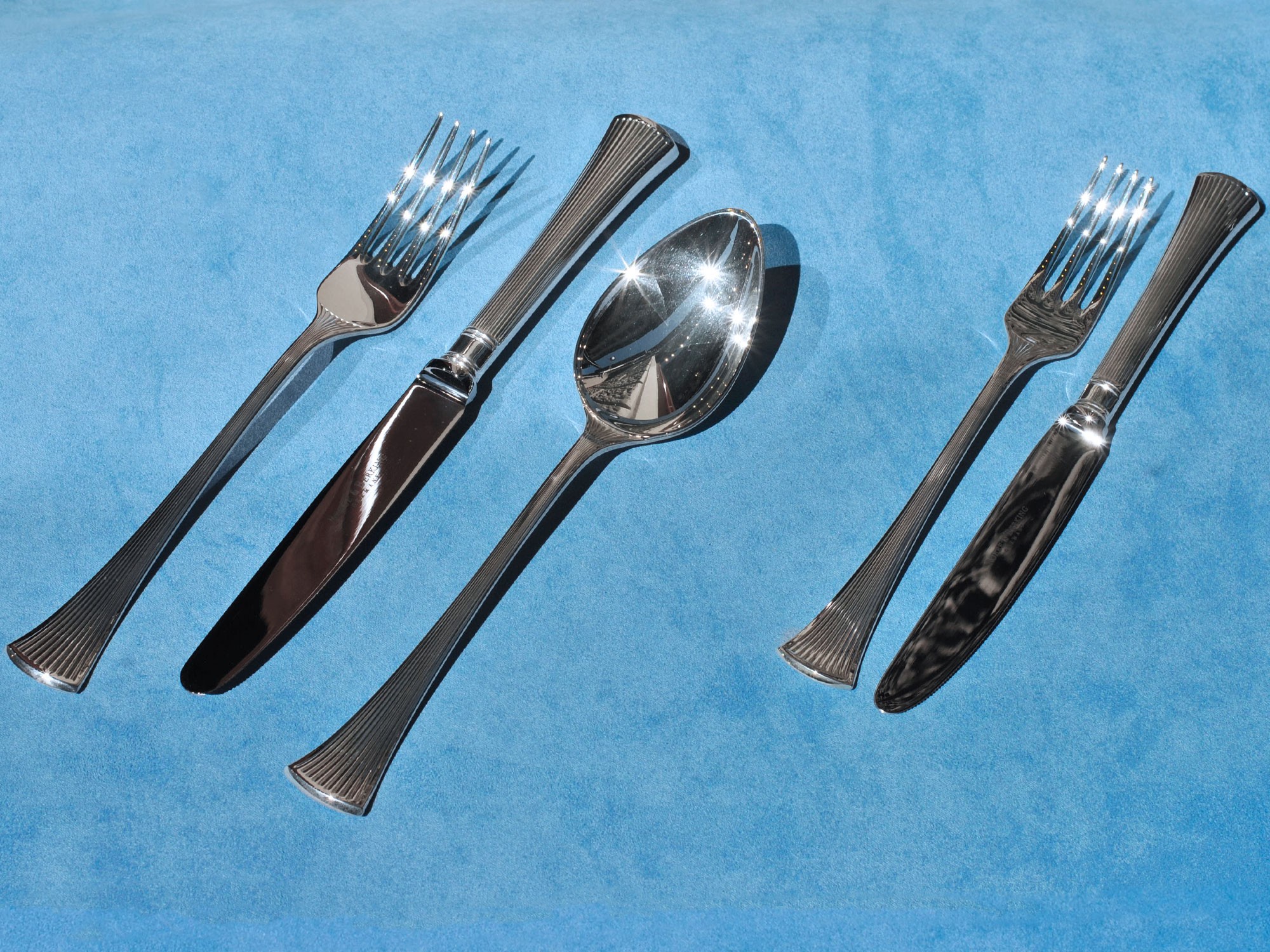 Il set comprende Forchetta, Coltello e Cucchiaio da menu e Forchetta e coltello dessert.