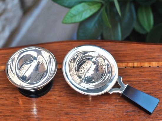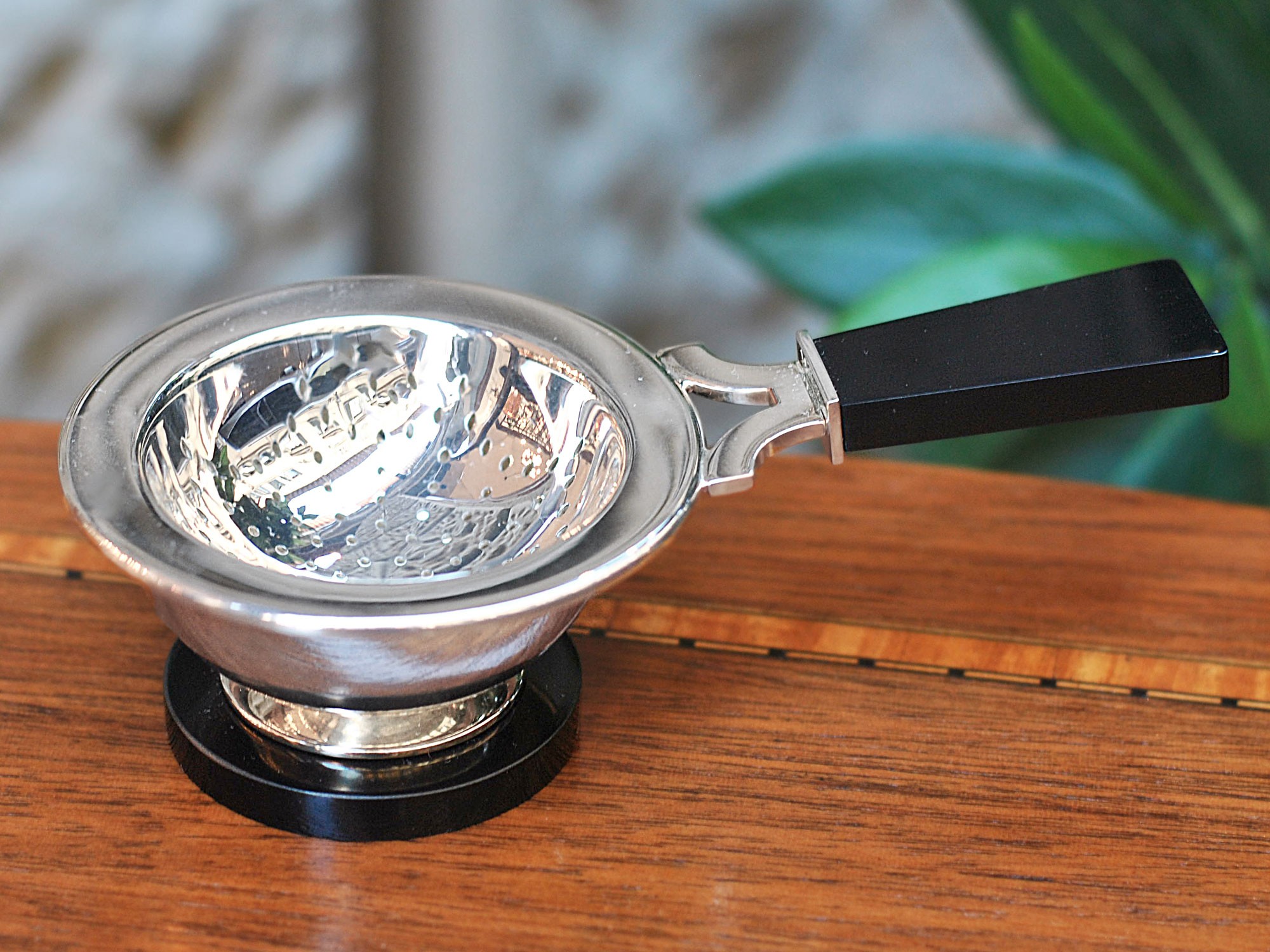 Realizzato con la massima cura artigianale, il colino presenta una struttura argentata finemente lucidata, progettata per filtrare perfettamente foglie di tè sfuso senza comprometterne l'aroma.