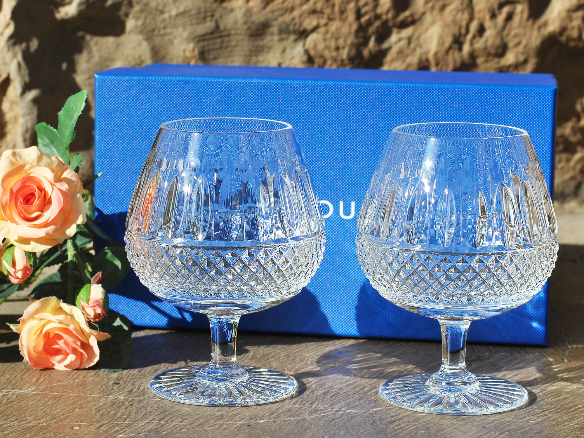 Questi bellissimi bicchieri riflettono, con i loro tagli di stella e diamante, tutta l'abilità e la destrezza dei maestri vetrai di Saint-Louis.