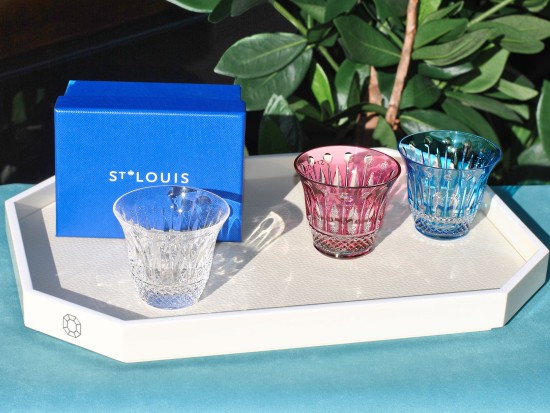 Dalla linea Tommy di Saint Louis , una meravigliosa collezione di piccoli bicchierini, luminosi, per assaporare con gioia e brio, ogni sorso di liquore o anche di acqua dopo il caffè, od anche il caffè stesso.