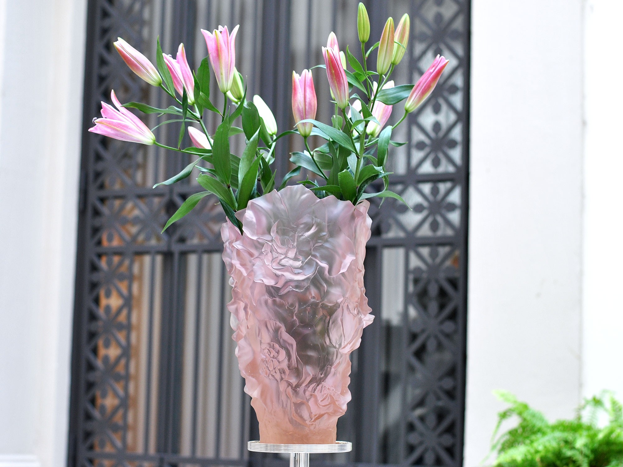 Un susseguirsi di affascinanti Camelie Rosa, un elevarsi di Bellezza, di Arte, di Mistero: Uno splendido Vaso Camelia, che Daum propone ed espone,